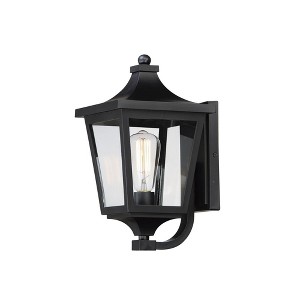 Stately outdoor sconces reference classic lantern shapes and are constructed of Maxim's proprietary Vivex composite, a robust weather-resistant materials guaranteed to withstand harsh weather climates. Available in several sizes and illuminated with clusters of candle sockets, this is a timeless design built to last. Material: Glass, Finish Color: Black, Width: 7.75", Height: 14.5", Depth: 8.75", Height From Outlet Box: 7", Backplate Width: 4.75", Backplate Length: 8", Lamping Type: Incandescent, Number Of Bulbs: 1, Wattage: 60 Watts, Dimmable: Yes, Moisture Rating: Wet Rated