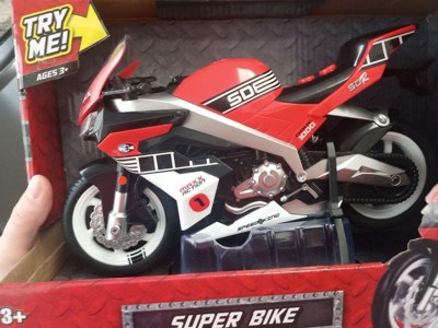 [This review was collected as part of a promotion.] This super bike motorcycle is good. It pops wheelies like the box says. The plastic that it is made of feels a bit cheap. It has 2 buttons. It is very kid friendly.