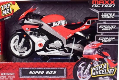 Maxx Action Super Bike with Wheelie Feature - Motorized Toy Motorcycle: Battery-Powered Metal & Plastic, 1:24 Scale