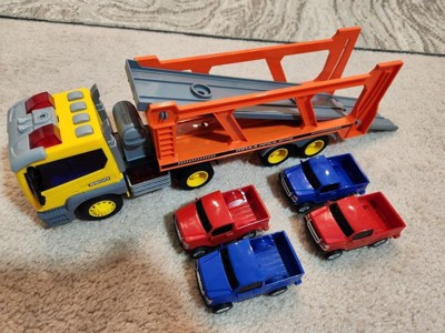 Maxx Action Vehicle Transport Playset - Semi Truck with 4 Mini Pickup Truck: Toy Vehicles, Metal & Plastic, Battery Operated