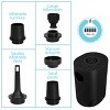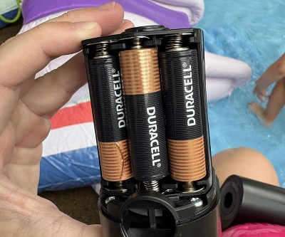 [This review was collected as part of a promotion.] This portable air pump is great to have around the house. The air pump is so small (2”w x 3.5”h)and lightweight. It comes with several different attachments for different types of inflatables. The pump does have the “vacuum” end for deflating items as well. The only thing that I do not like is that it requires 6 AA batteries, other than that I can’t wait to use this for all the summer inflatables.