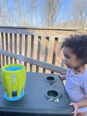 [This review was collected as part of a promotion.] This is so much fun! Easy to fill and use and makes a ton of bubbles. Both my 1 year old and my 3.5 year old thoroughly enjoyed this. Provides extended time of fun so parents can have a little bit of a break. Highly recommend!