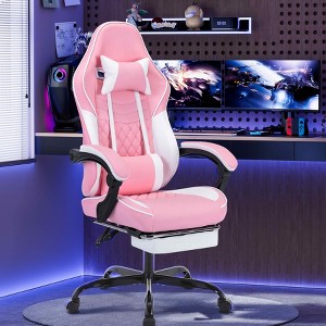MAYEERTY Ergonomic Video Gamer Chairs, Computer Gaming Chairs with Massage Lumbar Support and Footrest Pink White