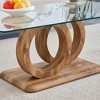 MAYEERTY Ring-Base Glass Coffee Table, Lounge Coffee Table, Natural Wood