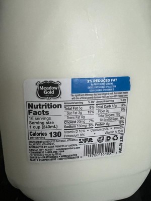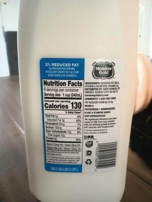 Meadow Gold 2% Milk is a reduced fat milk with vitamin A and vitamin D, making it a wholesome choice for the entire family. Creamy and delicious, this 32 oz milk has 8 grams of protein and 25% of the daily value for calcium with vitamin D in every serving. Pour this 2% milk into a tall glass for a midnight snack, enjoy it with breakfast, or use it as a base for your cereal. This half gallon of 2% reduced fat milk is convenient for a small family and a nutritious drink for an individual. Meadow Gold dairy milk meets special requirements in safety, nutrition and production and reflects a commitment to the highest standard of dairy processing for over 50 years. This half gallon of 2% milk comes from dedicated family farmers who take pride in nourishing communities. At 130 calories per serving, 2% Reduced Fat Meadow Gold Milk is a wholesome alternative to whole milk.
