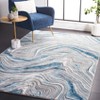 Elevate your space with the contemporary allure of our 6'-7" X 6'-7" Square area rug, a sophisticated addition to any room seeking a touch of modern elegance. With its enchanting blue and grey color palette, this rug introduces a serene yet striking ambiance that blends effortlessly with various interior designs.