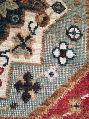Rug came defective. The weave is missing and very thin on the blue medallions. I can see right through to the backing of the rug. It doesn't look right and is an eyesore. I asked Target for a discount so I don't have to disassemble my entire bed again just to return it but the discount was not significant enough for a defective rug. Huge pain and disappointing, the rug otherwise was cute.