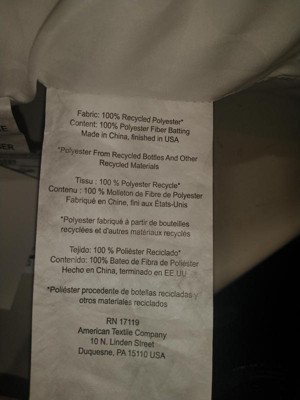 Pros: 1. It is a pillow. 2. As listed, it is a regular sized pillow (YAY for correct labeling and advertising). 3. It is super puffy (see picture). 4. It has allergy protection!!!!!!! ... which is very important because we rescue animals. 5. It is SUPER COMFY to sleep on that I finally got my pillow back from the bed pillow thieves. 6. It is made 100% from recycled materials (see picture)!!! Cons: None. Nada. Zilch.