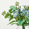 Bring nature indoors without the hassle of upkeep with this Medium Flower and Leaf Arrangement from Hearth & Hand™ with Magnolia. This artificial arrangement features multiple stems with blue daisy flowers and green leaves housed in a transparent glass vase for a gorgeous look. Suitable for indoor use, this floral arrangement will serve as a stunning centerpiece on the entryway console or mantle.