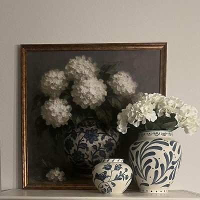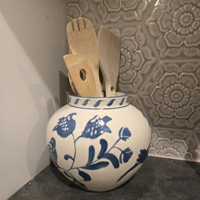 Add charming style to your home with these Blue Painted Ceramics from Threshold™. This painted collection features a large vase, medium vase, bud vase and taper candle holder. Made of ceramic, each piece is adorned with a pretty blue botanical print on a white backdrop that brings fresh appeal to any room. Featuring a watertight construction, the vases are great for displaying fresh or faux flowers, and you can mix and match the pieces on shelves or tabletops to add depth and coordination to your space.