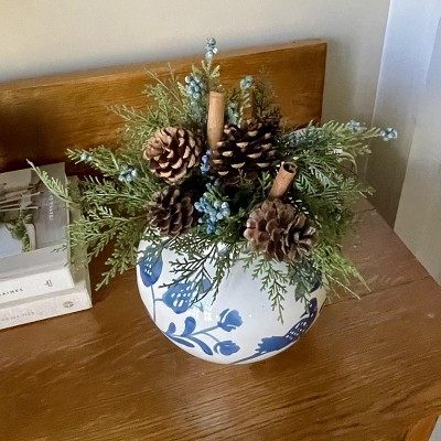 This was a beautiful addition to my kitchen decor, I have a blue and white hydrangeas arrangement in it and it's beautiful!