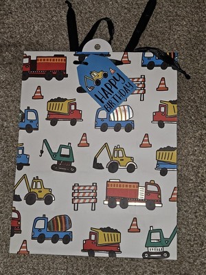 Medium OB Construction Gift Bag - Spritz™: Birthday Kids Boys Multicolor Vehicle Pattern 12.75"x10"x5"
