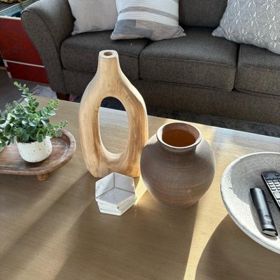 [This review was collected as part of a promotion.] I recently bought a new end table and wanted some new decor to go on top of it. Target did not disappoint in its selection of trendy decor options. I found this ceramic vase and knew that it would go perfectly with my selection. This vase is a high-quality option. It is a rich brown color and will look perfectly with some eucalyptus stems in it. I definitely recommend.