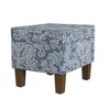 Medium Storage Ottoman Denim - HomePop: Upholstered Footstool, Botanical Pattern, Hardwood Frame