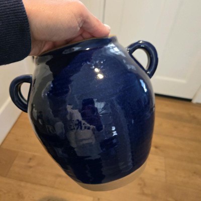 This medium Tuscan ceramic handled blue vase from Threshold is absolutely gorgeous and really stands out in your space. This modern, useful and amazing quality vase takes me to the rolling hills of Tuscany and can transform your kitchen or living room to a Tuscan villa. The vase is huge, much bigger than a medium I think.