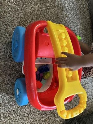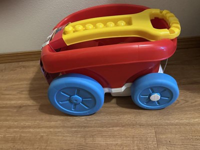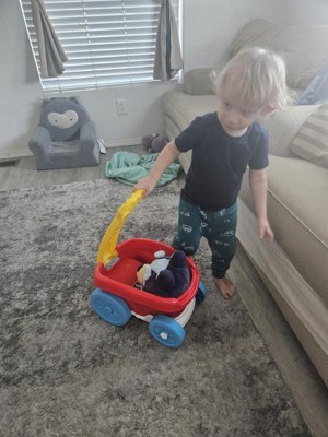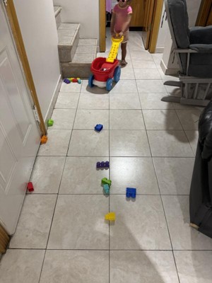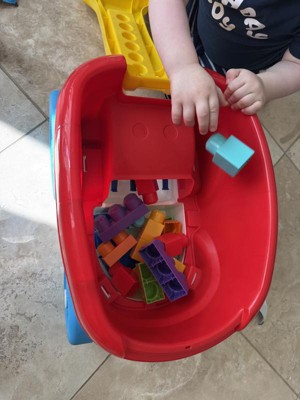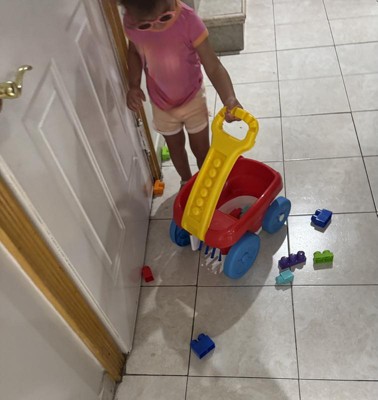 [This review was collected as part of a promotion.] This is my 2 year old's favorite wagon toy. He carries it around with his Mega Bloks and other toys. I was going to use it as a Mega Bloks cleaner, but our house has hardwood floors and it's too slippery for block collecting. But I love the size of the toy, the colors, and the concept. I think it would make a great gift.