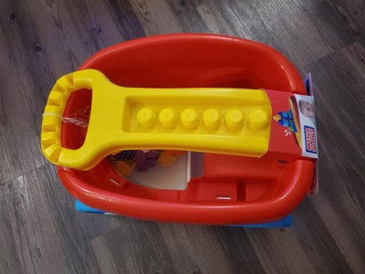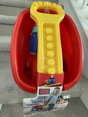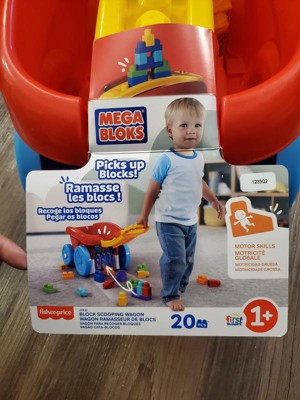 [This review was collected as part of a promotion.] Mega Blocks Scooping Wagon. This is cute, fun, and educational toy incorporating fun and learning in a awesome way. I love the variety of colors in the item so colors can be learned within the process.