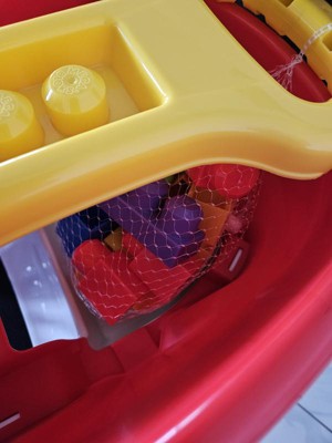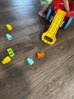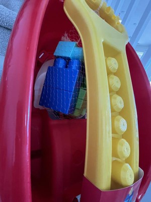 [This review was collected as part of a promotion.] I like the color of the truck. I also like how it scoops up the blocks easily. It is easy for my son to pull it around the house. I also like it pushes easy on flat surfaces like outside. I dont like only 20 blocks will fit at a time. My son has tons of block we wish it could scoop more.