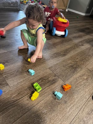 [This review was collected as part of a promotion.] The MEGA BLOKS Block Scooping Wagon has been a hit with my toddler, mostly because he’s obsessed with anything that has wheels. Rolling it around the house is one of his favorite activities, and he loves transporting the colorful blocks all over, which keeps him busy and active. The handle is easy to grip, and the storage compartment inside the wagon is handy for quick clean-up and building sessions. He also likes building towers on the handle itself. However, when it comes to the block-scooping feature, the experience is a mixed bag. The idea is fun—push the wagon, and it should scoop up blocks. But in reality, it only picks up blocks reliably on carpeted surfaces. On our slicker floors, the blocks tend to slide away and the wagon rarely grabs them as intended. This means we usually end up manually picking up blocks and placing them inside, which works fine, but isn’t as magical as expected. I’ve seen other reviews mention similar frustrations, so your results may vary depending on your flooring. Despite the scooping issue, the wagon itself is sturdy, vibrantly colored, and serves as an excellent storage bin for blocks, making it a practical and enjoyable toy for toddlers who are as fascinated by wheels as mine is. For families with mostly carpeted areas, the scooping action may work better and could add a bit more interactive fun.