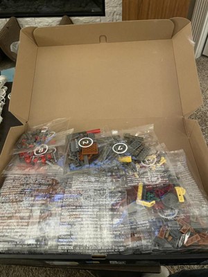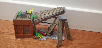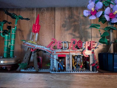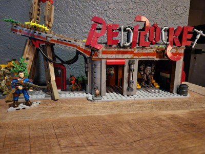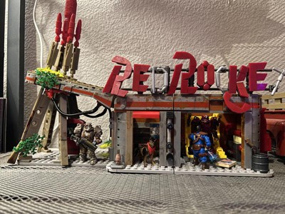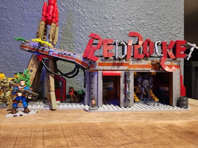 [This review was collected as part of a promotion.] As a fan of both the Fallout franchise and construction toys, I was excited to get my hands on this set and experience a Mega set. I haven’t built one since the early days of the Halo licensed collaboration, and this set has drastically improved on how I remember that experience. Upon opening the package, my first impression was that the set was logically divided into several waves of bags. This provided an easy stopping point which allowed me to break the set up into several building sessions and better fit it into my schedule. I liked that there were some pieces that were made of multiple colors of injected plastic, allowing for a more “natural” look to the pieces, which fit well into the set. However comparing the pieces in the instructions to those in the bag, it was sometimes hard to identify which piece was which due to the lack of the secondary injected color on some pieces. Better controls of the injection molding process could help perfect the aesthetics of each piece. Continuing with the build I started to encounter some of the unique molded pieces such as the character figures and their accessories. I appreciated the realism and detail on these characters, as well as their possibility. I think it provides an advantage for Mega in their marketplace. However I was disappointed by how the characters fit into the sets. Due to their shape they fit into the set by taking a stance with a “split”, and they didn’t fully seat onto the studs. Additionally the dog character did not fit into the set at all, something I think would have improved the experience. It also was missing the saddle or harness it was supposed to come with. Regarding the construction of the set, I liked the brick separator included with it. I could tell that it was developed with builders in mind as it included a lot of helpful features for experienced builders such as the bits in the side that help push out thin circular pieces. I also liked the way the instructions differentiated between newly placed pieces with yellow and blue shadows of where they are placed. However at some points during construction I had multiple flat pieces of varied lengths, and there wasn’t any handy reference to tell what length pieces are used. A scale accurate photo of the length to be used in a certain step would save the user from guessing or counting the number of studs manually. It is hard to tell what a number more than 5 is for the average person, so one can’t easily tell the difference between a 1x8 and 1x10 piece at first glance, especially if it is a flat piece with no studs on top. There were a couple instances later in the build that did have length references, leading to more frustration and confusion as to why it wasn’t included consistently when there were long pieces. I also enjoyed the different building techniques employed to construct the set as it made the set look a lot more natural than a completely rectangular brick build. There were some new piece designs that I hadn’t encountered before that I thought were great ideas and enabled more flexibility in the build. However some of the pieces had excess flash from the molding process, which lowered the quality feel of the set With the set completed, I was pleasantly surprised with the result. Overall I thought the set had excellent detailing throughout. Fallout has an aesthetic that is random, organic, and disheveled, and Mega was able to capture that very well with the overall construction of the set as well as the details included throughout, staying authentic to the licensed IP. The size and level of detail of the set is very fair for the price. The set was clearly designed for not just display, but also play, with a removable roof and several figures and accessories included. Some of the pieces, particularly the flat ones that constituted the walls in some areas, had small gaps between them that were less than ideal. My particular favorite details were the character’s laser gun and attached laser ray, as well as the red rocket sign and the tilted rocket on top of the building. If you’ve played Fallout 4 it is immediately obvious what this set is supposed to be. Overall I think the set is fairly priced, and look forward to more sets from this IP from Mega Construx