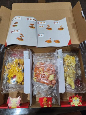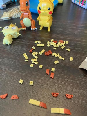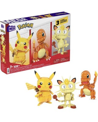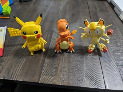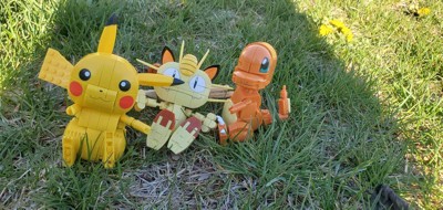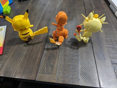 - 529-piece buildable and poseable Pokémon figure set featuring Pikachu, Charmander, and Meowth