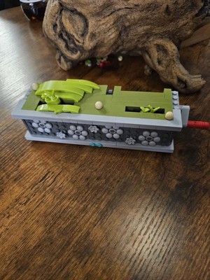 [This review was collected as part of a promotion.] How cute is this? My teens put it together in about 3 hours. You can switch the name plate out to 3 different languages. The back has clear blocks, so you can see the mechanisms working. It’s a great size, not “small” in any way. The ears can be positioned however you want. I just love the whole moving concept and hope to buy different versions, in the future. I’d definitely recommend this to any block builders out there. My oldest is 20 and always preferred Mega Blocks. My video is wonky because I was trying to hold my phone. But it turns fairly smooth.
