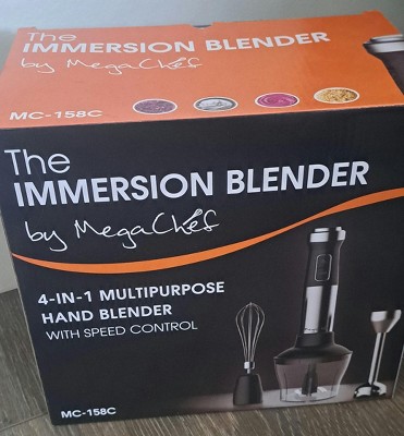 MegaChef 4-in-1 Multipurpose Immersion Hand Blender - Silver: Portable Handheld, 300W, 2 Speeds, Includes Chopper & Whisk