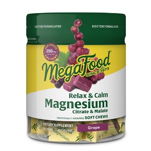 - DOCTOR FORMULATED MAGNESIUM SUPPORT: MegaFood Relax + Calm Magnesium Grape Soft Chews help relax the body, promote a sense of calm, and may ease muscle tension; Delicious Grape flavor; 250 mg of Magnesium per serving+