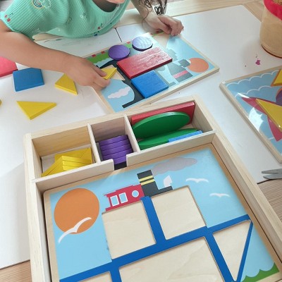 Melissa & Doug Beginner Wooden Pattern Blocks Educational Toy With 5 Double-Sided Scenes and 30 Shapes