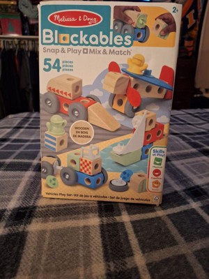 Melissa & Doug Blockables Vehicles Snap And Play, Mix And Match Connectable Wooden Building Blocks Play Set Toy - 54Pc