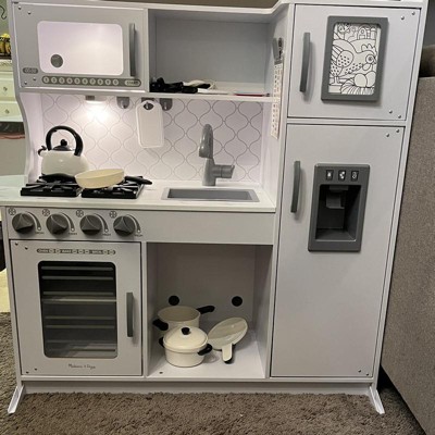 Melissa & Doug Wooden Chef's Pretend Play Toy Kitchen With "Ice" Cube Dispenser – Cloud White