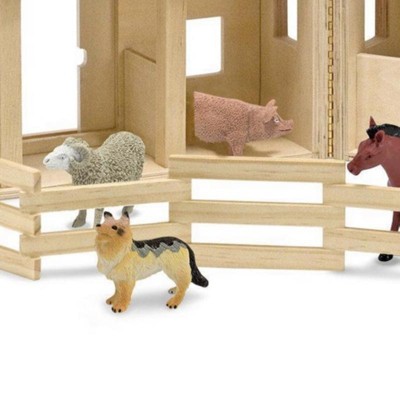 Melissa & Doug Fold and Go Wooden Barn With 7 Animal Play Figures: Plywood Toy Set with Handle, 10 Pieces