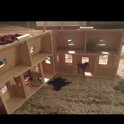 My son ADORES his barn! He plays with it pretty much every day. I love that he gets to use his imagination with it all the time, but there’s a couple things that would make it better. One, when you close the barn it is so simple to slam it shut, and it is so loud when it slams and it always scares the crap out of me. I’m sure you could stick some kind of soft stopper in it to stop that though. I also wish there was a latch to close the barn so transporting it could be easier. Aside from those minor nitpicky things, it’s a wonderful toy!