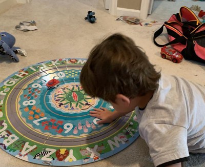 Piece together playtime with this circular puzzle with built-in tracks for wind-up vehicles (no batteries required)! The 48-piece oceanside-themed cardboard jigsaw floor puzzle can be put together as three separate rings or as one complete circle. A groove in the inner ring lets the wind-up boat cruise past sea creatures and the numerals one through 10 to promote number recognition and counting. The outer ring has a track for the wind-up school bus to drive by the letters of the alphabet and pictures that start with each letter (in English). Sing along as the bus goes round and round! This fun and educational puzzle and vehicle play set measures 27 inches in diameter when complete. When kids work on floor puzzles, they are fine-tuning their gross motor skills, improving their hand-eye coordination, and strengthening their problem-solving skills. This high-quality Melissa & Doug puzzle makes an exceptional gift for preschoolers and school-aged kids for hands-on, screen-free play. This product is certified by the Forest Stewardship Council. FSC certification ensures that products come from responsibly managed forests that provide environmental, social, and economic benefits, and that forests are protected for future generations. Please note that FSC certification applies to new inventory only (FSC C156584)