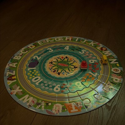 [This review was collected as part of a promotion.] I got this puzzle as part of a sampling company & my son loves puzzles. Came in handy just in time for his birthday he loves it. I love how it has the alphabet & numbers. With it came two vehicles that wind up and move my son loves it! Got him entertained building the puzzle. I love how the puzzle pieces are big making it easier for kids to build them. They seem pretty durable pieces so I know it would last some time. The puzzle also has a track printed for the vehicles to go around.I know my son will keep enjoying this lovely puzzle.