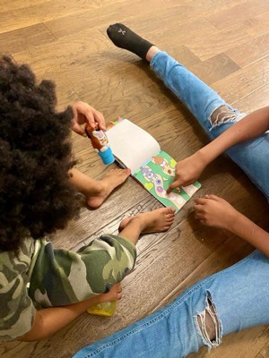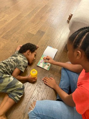 [This review was collected as part of a promotion.] It’s a great activity for older kids to enjoy with younger siblings. My toddler didn’t really understand how it worked but ended up loving it once my niece showed him what to do. The stickers don’t stick to walls or floor but only to the book that it came with, which is really cool!