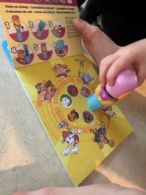 [This review was collected as part of a promotion.] My three year old is obsessed with paw patrol. I put this sticker book in her Easter basket and it was definitely the biggest hit of everything she received. Skye holds all the stickers and all you have to do is barely push down the bottom of the stamper to the many different activities to get a sticker. I will be stocking up on these for any car trip we take since this kept her busy for longer than most of the toys she has.