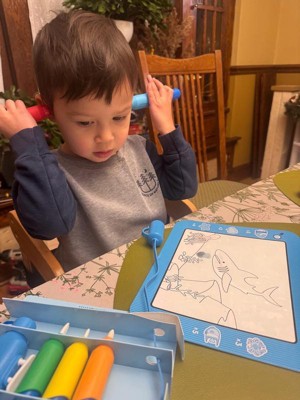 [This review was collected as part of a promotion.] I love this toy for my three year old son. It eliminates mess while encouraging him to be creative and have fun. The crayons are thick enough for him to hold and have stability. We love to use it on car trips to keep him busy. It’s affordable as well and durable for little boys.