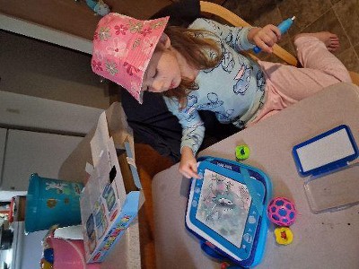 A great set! Love that it's got an attachment for the pen. I wish my 3 yr old didn't like to scratch the white top layer off. 🫠