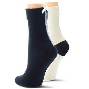 One solid sock with contrasting bow; one sock with contrasting heel
