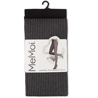 Our exclusive two-pair control-top tights offer the best of both worlds to your fashion arsenal. MeMoi's Ribbed textured tight adds pizzazz to a business or casual ensemble, while solid microfiber tight delivers all-around coverage for any occasion. Both tights feature a non-binding, comfort waistband and control top paneling for an overall smoother appearance.