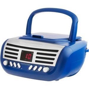 The MX-BCD100 is a retro-style top-loading AM/FM/CD player that combines vintage aesthetics with modern functionality. It is compatible with CD-R/RW discs and features a red LED CD track display for easy navigation. Enjoy convenient functions like skip/search, forward and back, repeat (1 or all), and programmable memory for a tailored listening experience. The AM/FM stereo receiver with telescopic antennas ensures clear radio reception, while the auxiliary input jack allows for additional audio sources. Designed for portability, the MX-BCD100 includes a foldable carrying handle and offers power options via AC120 60Hz or 6 x ‘C’ (UM-2) batteries (not included). It also comes with a built-in AC adaptor.