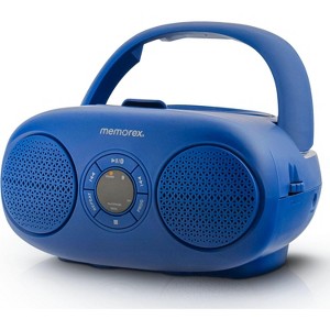 The MX-BCD30K is a top-loading CD player with Bluetooth playback, offering seamless wireless connectivity for your music. Compatible with CD-R/RW discs, it features a red LED CD track display for easy navigation. Enjoy convenient functions like skip/search, forward and back, and repeat (1 or all), along with programmable memory for a personalized listening experience. The built-in AM/FM stereo receiver and telescopic antennas ensure clear radio reception. Designed for portability, it includes a foldable carrying handle and an auxiliary input jack for additional audio sources. The MX-BCD30K also comes with a built-in AC adaptor for easy power access.