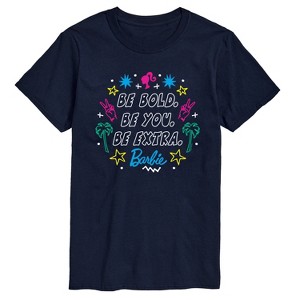 Barbie - Be Bold You Extra - Men's Short Sleeve Graphic T-Shirt - Step into the glamorous pink world of Barbie with our officially licensed graphic garments for the fashion-forward! Whether you dream of being a fashion designer, a mermaid princess, or a world-traveling explorer, our garments bring Barbie's world to life with vibrant colors and playful prints. Crafted with quality materials and attention to detail, each piece ensures comfort and durability for all-day play. Express your unique sense of style and imagination with our exclusive Barbie graphic apparel!