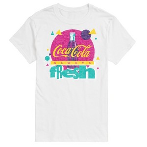 Coca-Cola - 90's Retro - Always Fresh - Men's Short Sleeve Graphic T-Shirt - Celebrate the timeless classic with Coca-Cola graphic apparel, a collection that blends iconic branding with nostalgic charm. Featuring the world-famous Coca-Cola logo, vintage-inspired artwork, and bold, refreshing designs, each piece captures the effervescent spirit of the beloved beverage. Whether you're a longtime fan or just love classic Americana, this apparel brings the joy, history, and unmistakable fizz of Coca-Cola to your everyday style. Perfect for casual wear, collectors, or anyone who appreciates the enduring appeal of the world’s favorite soda.