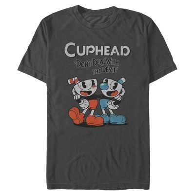 Cuphead and Mugman may not be happy about losing their bet to The Devil, but they sure are excited about this officially licensed Grim Matchstick and the Flame Minions Men's Tee! Dress in style and show your love for your favorite videogame characters with this fun graphic tee that features the boss Grim Matchstick with flame minions walking on his tongue!