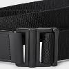 A: The belt features an adjustable design with a D-ring buckle closure for a customizable fit.