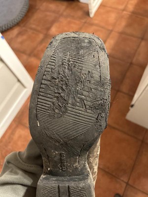 We’re sorry to hear this. That’s definitely not the experience we want you to have with your boots. Our boots are covered by a 1-year limited warranty against manufacturing flaws, defective materials, and workmanship under normal use. Since the outsoles started breaking down in less than a month, we recommend filing a warranty claim for review. If your boots were purchased from an authorized seller, please contact that seller first. If they were purchased directly from Durango’s site, or if the seller is unable to assist, please contact our Customer Service team for next steps and a return authorization number. Please have your proof of purchase available. We appreciate you bringing this to our attention and hope to help get this taken care of!