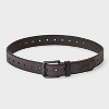 Add a touch of sophistication to your outfit with this Fully Laser-Cut Casual Belt from Goodfellow & Co™. Made from 100% leather, this solid-color belt features multiple notches on a medium-width band. Boasting a laser-cut design for precision, this belt has a buckle closure for a snug, stay-put fit. You can pair it with matching shoes, shirt and pants for a polished look.