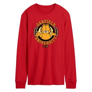 Garfield - University - Men's Long Sleeve T-Shirt - Bring the humor and laziness of the famous orange cat to your wardrobe with Garfield graphic apparel. Featuring Garfield, Odie, and Jon, these designs celebrate the iconic comic strip and its beloved characters.